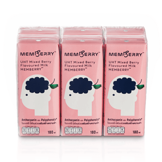 นม Memberry - นมที่มีสารสกัด Berry Active ที่มีสารแอนโทไซยานิน และโพลีฟีนอล ซึ่งมีคุณสมบัติในการเสริมความจำ พร้อมเสริมประสิทธิภาพการทำงานให้สมอง ได้รับผลวิจัยรองรับจากสถาบัน HHP & HP คณะแพทย์ศาสตร์ มหาวิทยาลัยขอนแก่น
